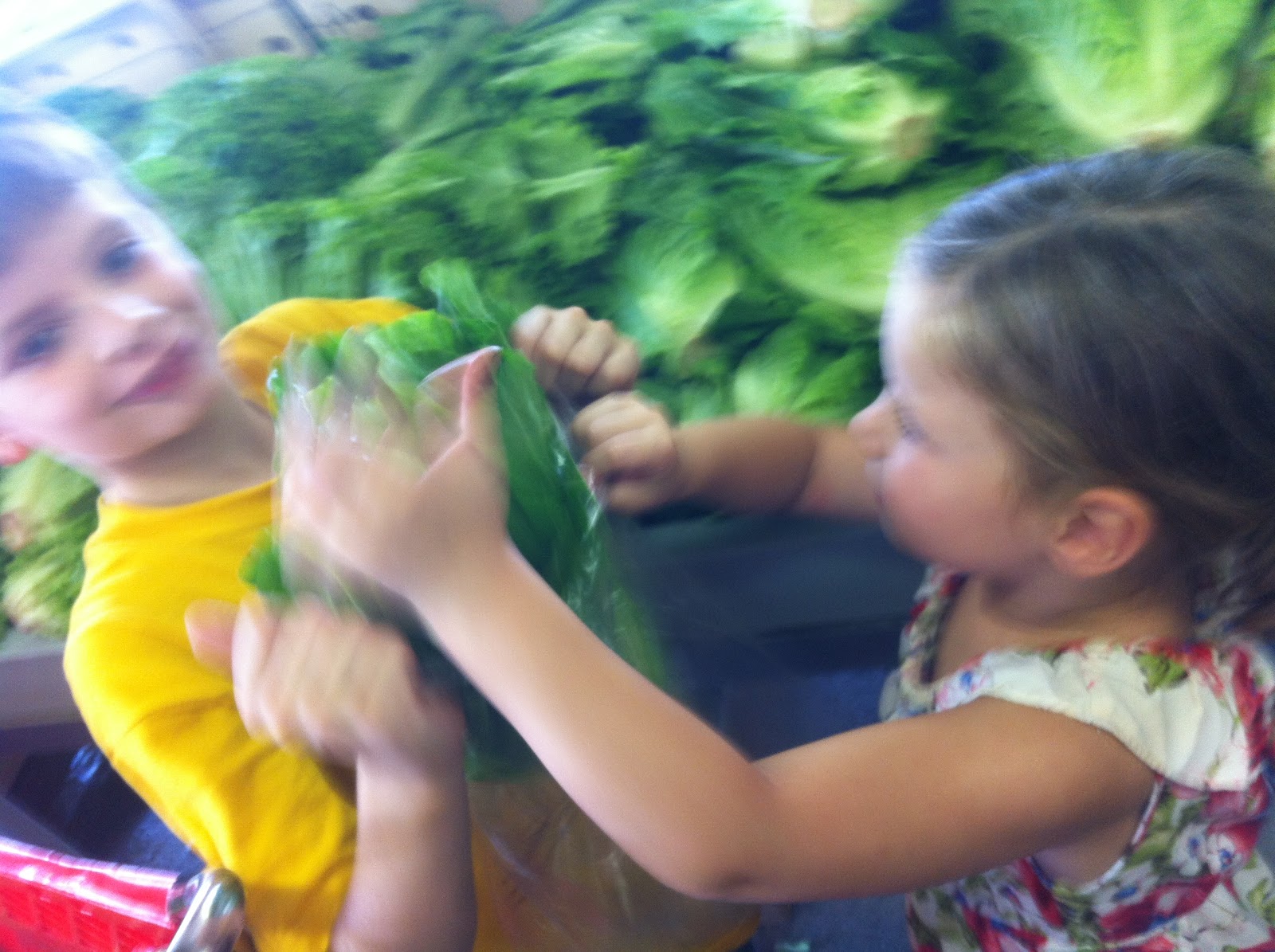 Tristin and Hudsyn helping me pick out fruit and veggies at the fruit market. Entire school lessons could be taught there.